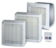 Ventilační jednotka na zeď či do okna, pr. 230 mm, 825 m3/h (odtah) / 530 m3/h (sání), 49 dB(A), IPX4, 5 rychlostní reg. v ceně, reverzace, elektricky ovládaná žaluzie Ventilátor pro restaurace, bary, spol. prostory