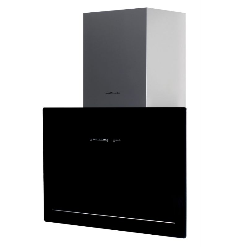 Komínová ke zdi, 700 mm, nerez/černé sklo, dotykové (senzorové) ovládání TC Slider, 1 motor BTDCA 130 W, 4+1 rychlostí, 820 m3/h (5 Pa), max. hlučnost Lw 65 dB(A), max. tlak 375 Pa, 15 min. časovač, LED pásek s nastavitelnou intenzitou jasu