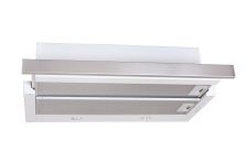 Vestavná digestoř výsuvná, jediná na trhu s odtahem dozadu nebo nahoru (oba 120 mm), šíře 50 cm, bílá s nerez lištou, max. výkon 338 m3/h (15 Pa), hlučnost Lw 56 – 71 dB(A), 3 rychlosti, odsávací jednotky mají individuálně vyvažovanou turbínu, motory jsou opatřené vratnými tepelnými pojistkami (při přetížení motoru vypne, po jeho vychladnutí opět sepne), mechanické posuvné ovládání, kovové sendvičové tukové filtry, které lze mýt v myčce, možnost práce v odtahovém i recirkulačním režimu, Výbava: úsporné LED osvětlení 1 × 2,8 W (LED pásek), zdarma zpětná klapka Recirkulační režim u vestavných digestoří: Digestoř se osadí uhlíkovým pachovým filtrem. Přefiltrovaný vzduch se z digestoře odvádí obdobně jako u odtahového režimu trubkou, která prochází celou skříňkou. Tato trubka však neústí kolenem do zdi, ale nad skříňku, kde ji doporučujeme zakončit mřížkou. Pro výrobu skříňky je směrodatný rozměrový nákres a údaje v něm uvedené. Fotografie digestoří jsou ilustrační.
