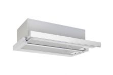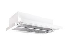 Vestavná digestoř výsuvná, šíře 60 cm, bílá s bílou lištou, max. výkon 338 m3/h (15 Pa), hlučnost Lw 56 – 71 dB(A), 3 rychlosti, odsávací jednotky mají individuálně vyvažovanou turbínu, motory jsou opatřené vratnými tepelnými pojistkami (při přetížení motoru vypne, po jeho vychladnutí opět sepne), mechanické posuvné ovládání, kovové sendvičové tukové filtry, které lze mýt v myčce, možnost práce v odtahovém i recirkulačním režimu, Výbava: úsporné LED osvětlení 2 × 2 W, zdarma zpětná klapka Recirkulační režim u vestavných digestoří: Digestoř se osadí uhlíkovým pachovým filtrem. Přefiltrovaný vzduch se z digestoře odvádí obdobně jako u odtahového režimu trubkou, která prochází celou skříňkou. Tato trubka však neústí kolenem do zdi, ale nad skříňku, kde ji doporučujeme zakončit mřížkou. Pro výrobu skříňky je směrodatný rozměrový nákres a údaje v něm uvedené. Fotografie digestoří jsou ilustrační.