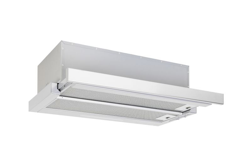 Vestavná digestoř výsuvná, jediná na trhu s odtahem dozadu nebo nahoru (oba 120 mm), šíře 50 cm, bílá s nerez lištou, max. výkon 338 m3/h (15 Pa), hlučnost Lw 56 – 71 dB(A), 3 rychlosti, odsávací jednotky mají individuálně vyvažovanou turbínu, motory jsou opatřené vratnými tepelnými pojistkami (při přetížení motoru vypne, po jeho vychladnutí opět sepne), mechanické posuvné ovládání, kovové sendvičové tukové filtry, které lze mýt v myčce, možnost práce v odtahovém i recirkulačním režimu, Výbava: úsporné LED osvětlení 1 × 2,8 W (LED pásek), zdarma zpětná klapka